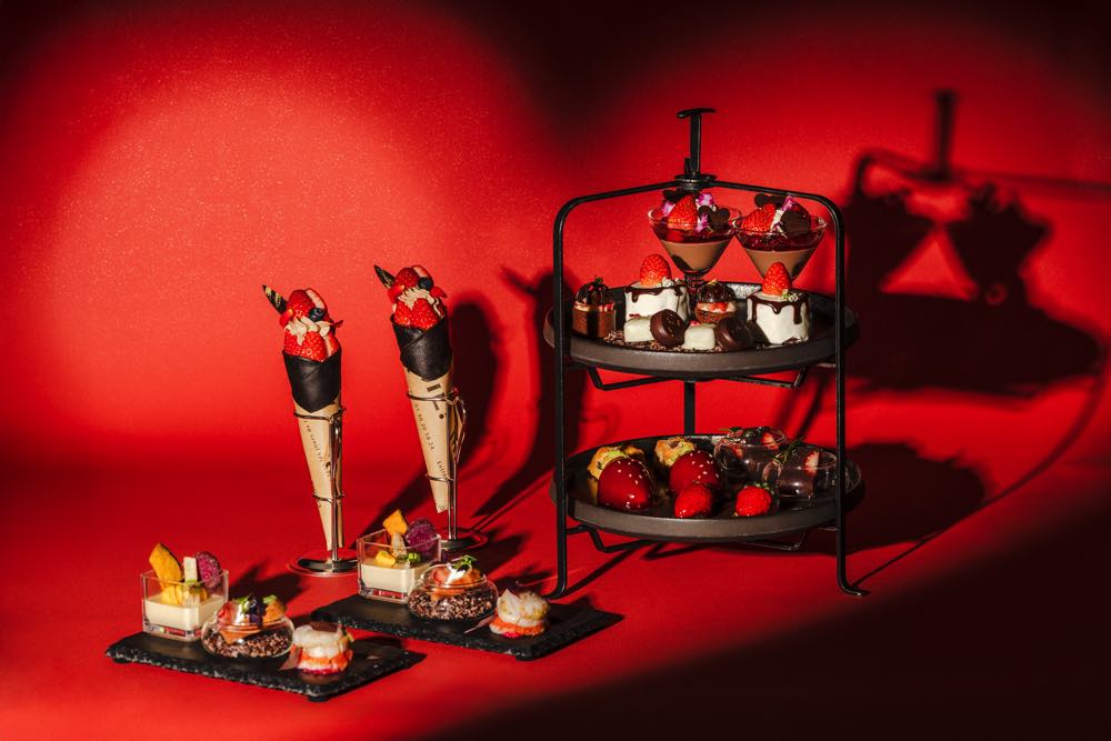 アフタヌーンティーは、現在開催中の「いちごアフタヌーンティー~Strawberry Symphony~」を、バレンタインをより満喫できるようアレンジした期間限定の特別メニューだ。甘酸っぱい苺と、ほろ苦く芳醇なショコラの余韻が広がる、シックで華やかなラインナップとなっている。